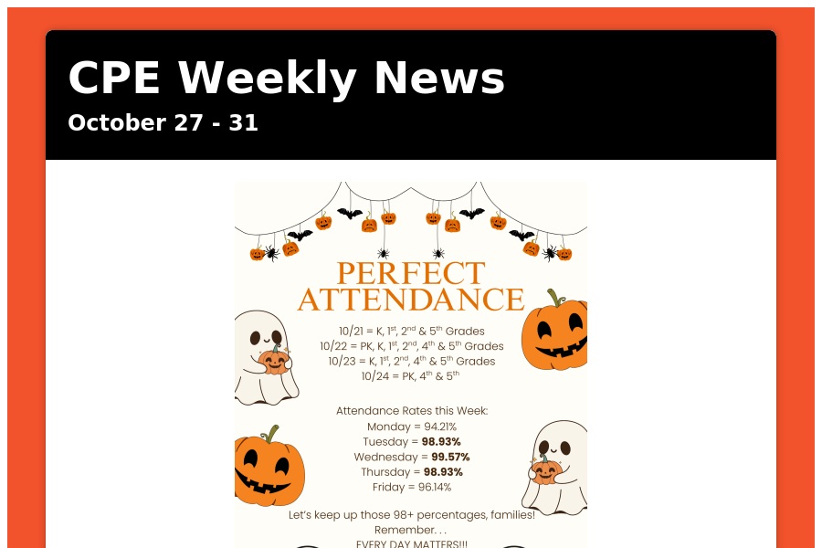 CPE Weekly News October 27 - 31 Happening This Week: RED RIBBON WEEK! (See Flyer) Tuesday, October 28 - Good News Club @ First Baptist Church Wedne. . .